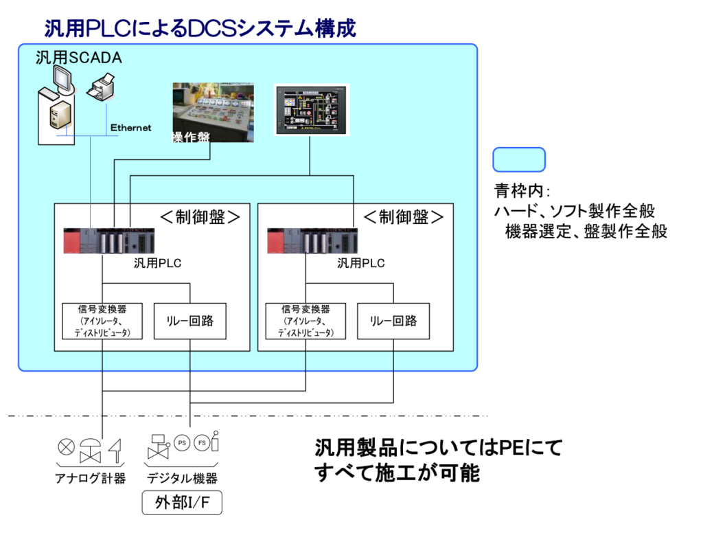 また、中小規模の計装制御システムには汎用PLCを用いたシステム設計も積極的に行っています。汎用PLCを用いることで、高品質のシステムの構築を実現し、多くの鉄鋼・非鉄金属会社様向けに低価格で提供することが可能です。