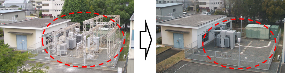 - 屋外露出型受電所をキュービクルタイプに更新(22kV)
