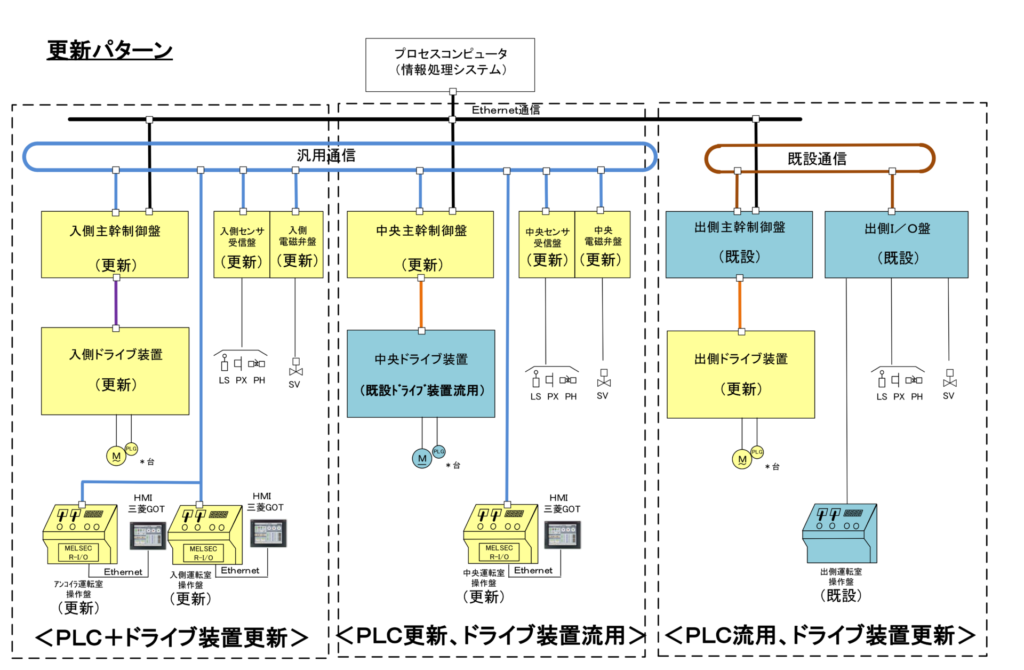 提案します。以下がプロセスラインのPLC・ドライブ装置更新の例です。