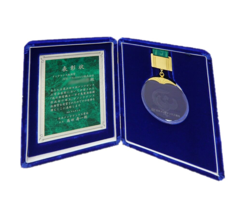 2021年6月、日本メンテナンス工業会よりメンテナンス技術賞とメンテナンスマイスター賞を受賞しました。